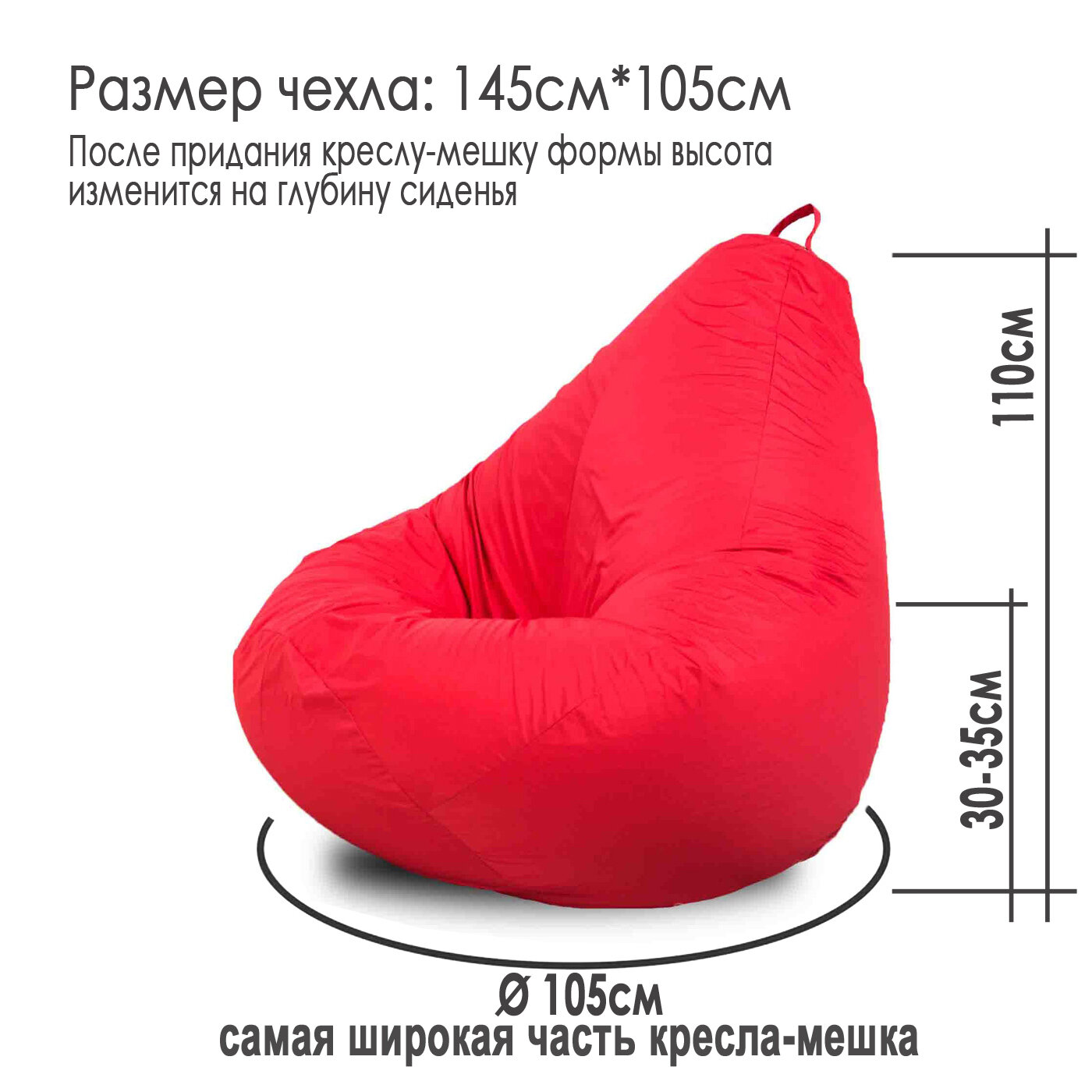 Большое бескаркасное кресло-мешок 5XL красный Дюспо информация: