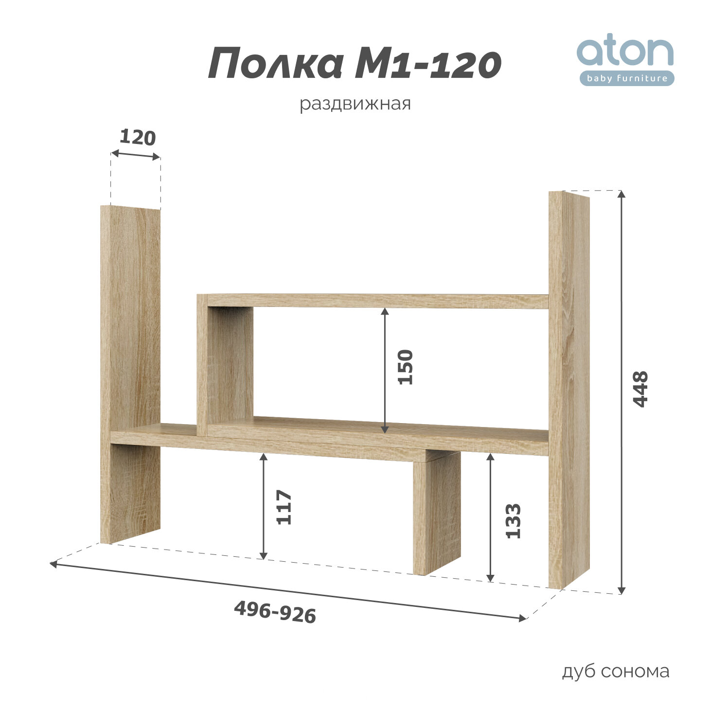 Полка настольная раздвижная М1-120 дуб сонома информация: