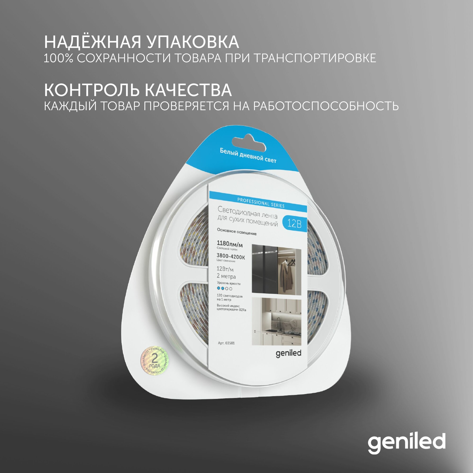 Светодиодная лента Geniled 2м 12В 12Вт/м 4000К IP33 нейтральная дневная подсветка 120 led/m 03581 7 000 ₽