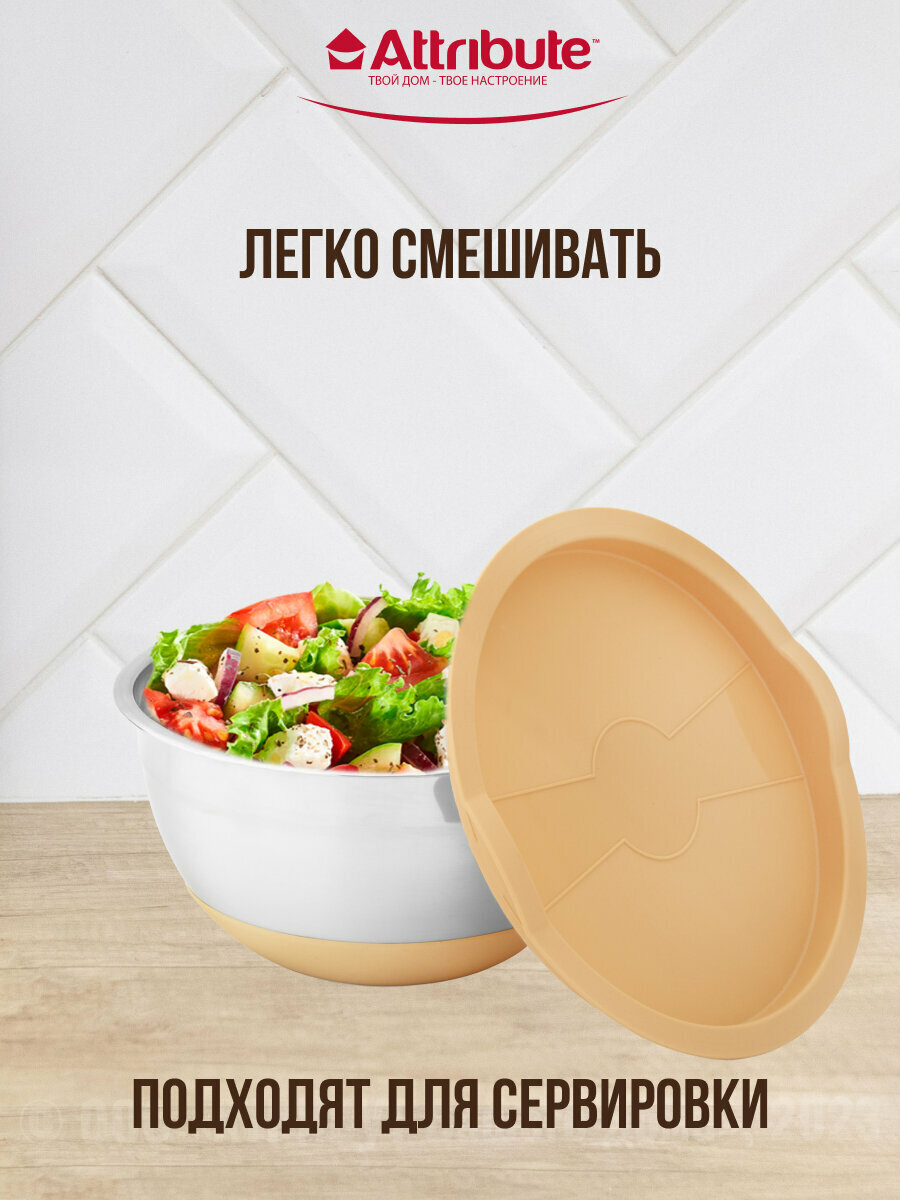 Набор мисок с крышками "NATURA", 2шт 1.5л+2.4л, нержавеющая сталь/пластик информация: