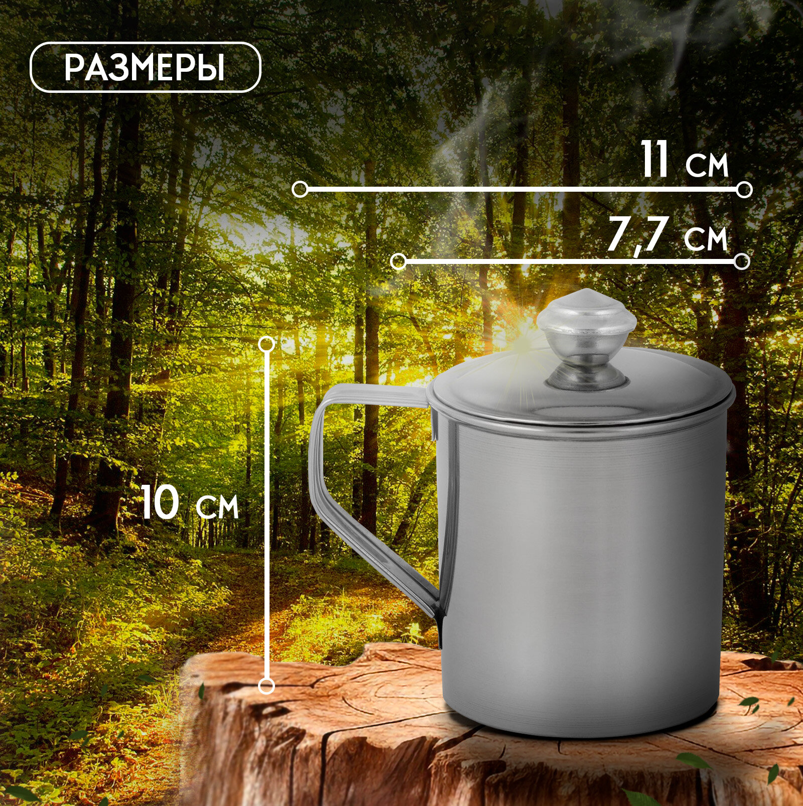 Кружка металлическая Доляна с крышкой, 200 мл, 9,5х6,8х8,5см (848675) 295 ₽