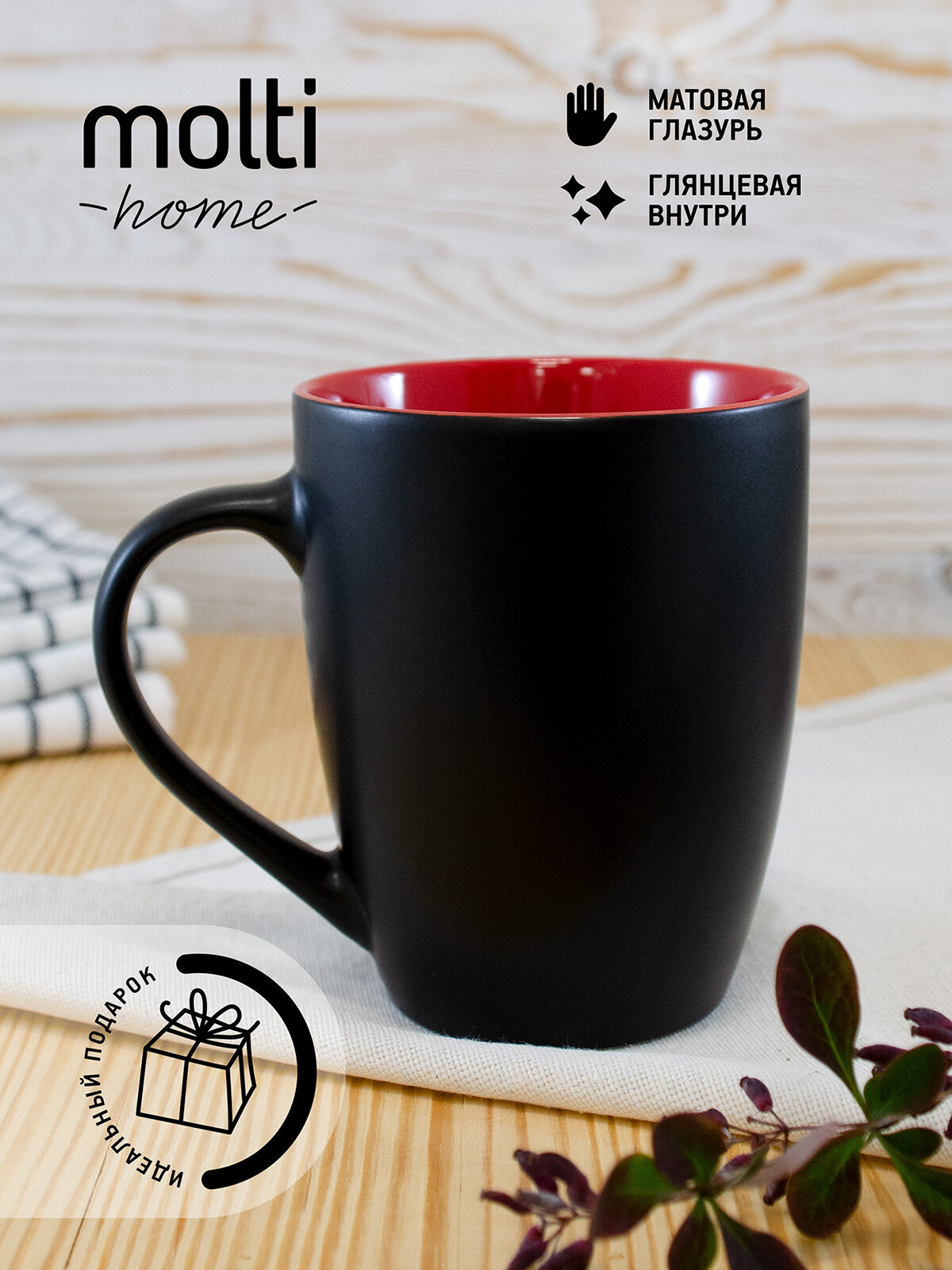Отзывы на Кружка матовая для чая и кофе molti Bright Tulip двухцветная чашка подарочная 340 мл, черная с красным