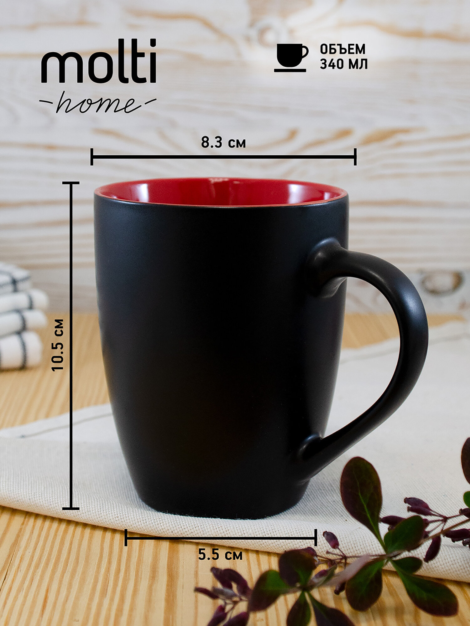 Кружка матовая для чая и кофе molti Bright Tulip двухцветная чашка подарочная 340 мл, черная с красным информация: