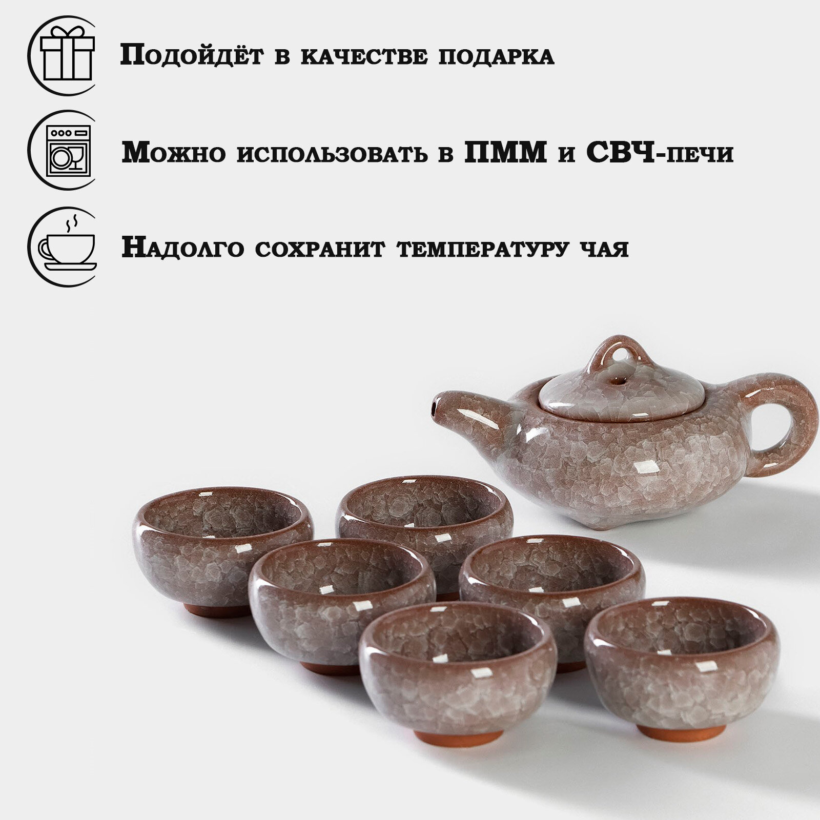 Набор для чайной церемонии на 6 персон, чайный сервиз "Лунный камень" чайник 150 мл, 6 пиал информация: