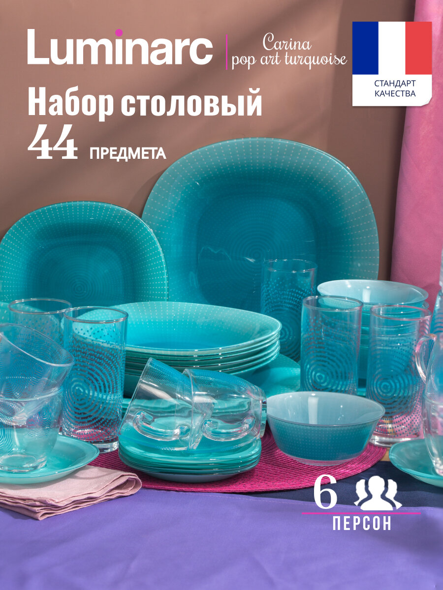 Набор столовой посуды Luminarc CARINA POP ART TURQUOISE 44 предмета информация: