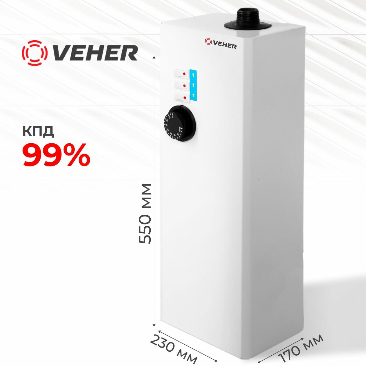 Котел VEHER, электрический, 3кВт, однофазный, настенный, белый информация: