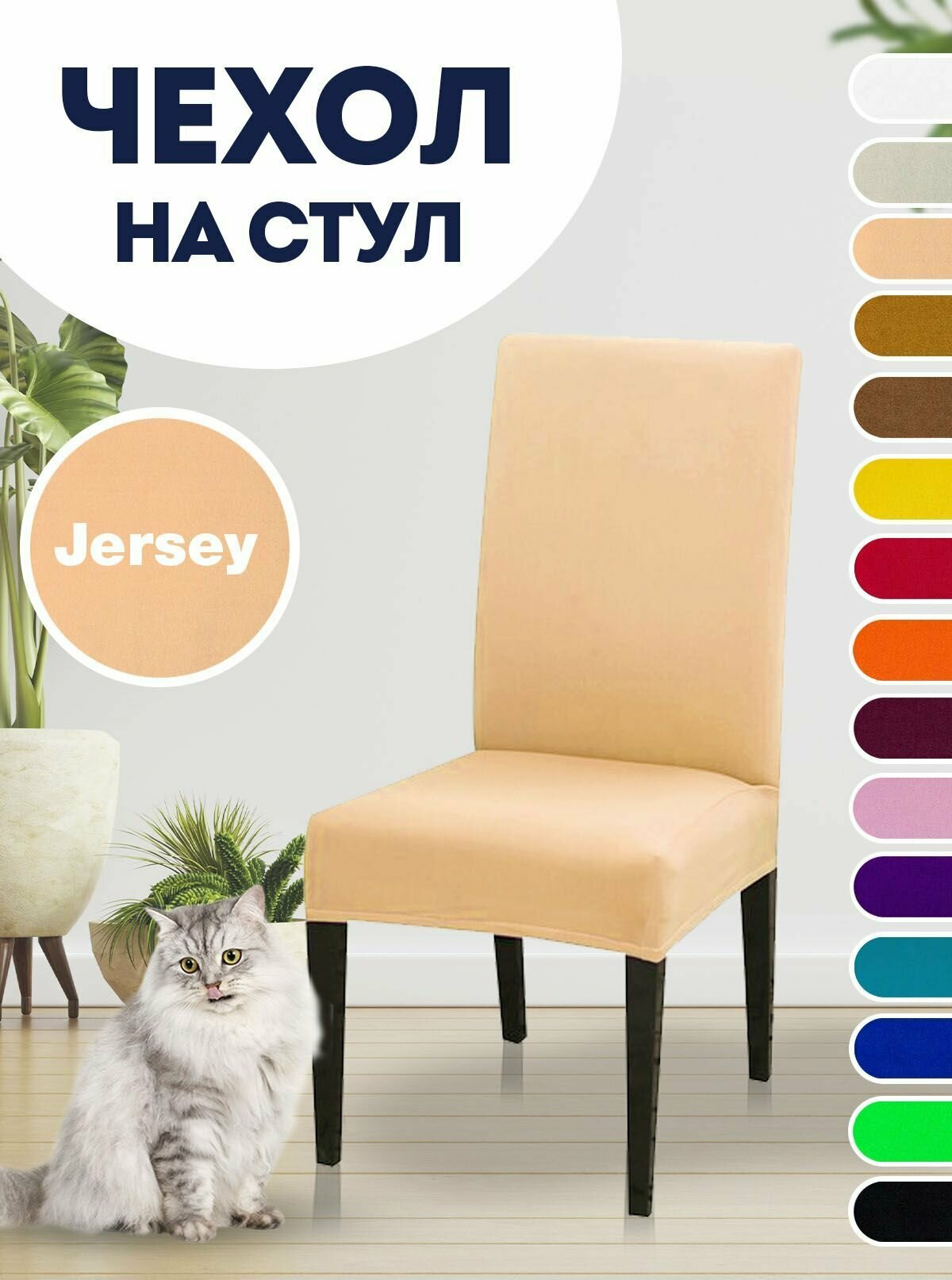 Чехол на стул, чехол для стула со спинкой Jersey Бежевый информация: