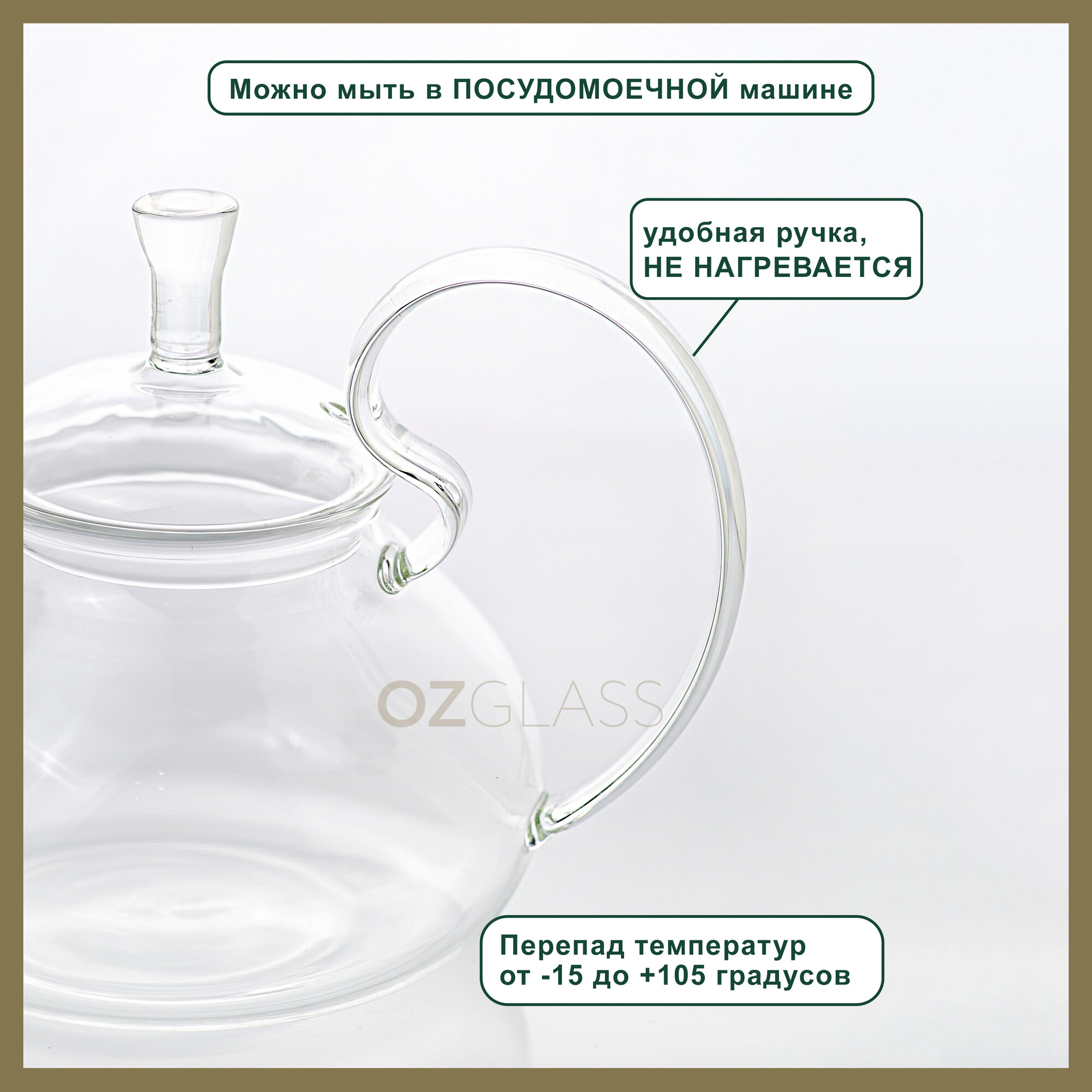 Стеклянный чайник OZGLASS Венши, в подарочной упаковке, 600 мл информация: