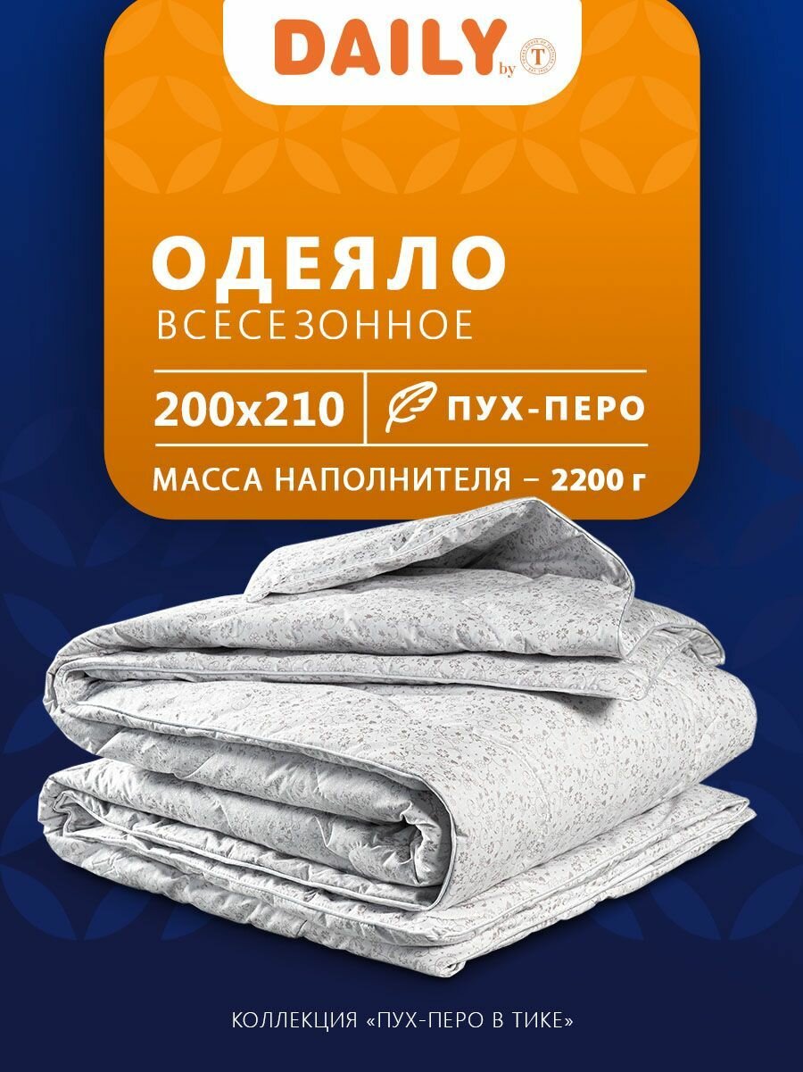 Daily by T Одеяло "Пух-перо в тике" всесезонное, хлопок с наполнителем Гусиный пух, 200х210 1-пр. информация: