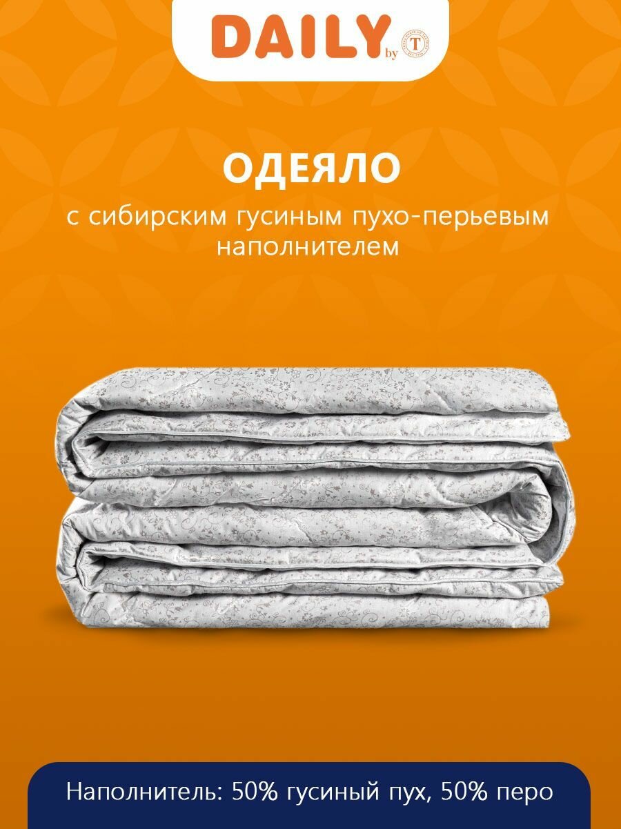 Daily by T Одеяло "Пух-перо в тике" всесезонное, хлопок с наполнителем Гусиный пух, 175х200, 1-пр. 4 667 ₽