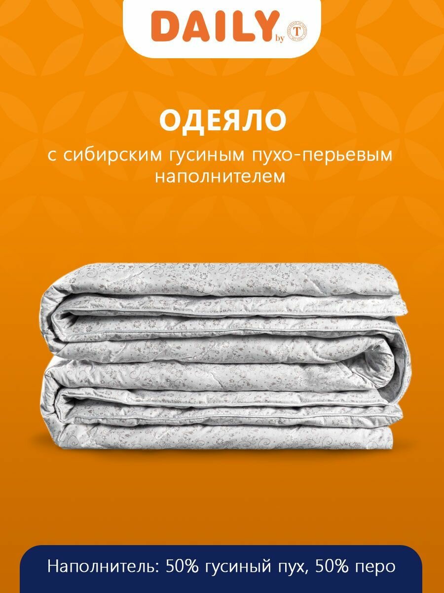 Daily by T Одеяло "Пух-перо в тике" всесезонное, хлопок с наполнителем Гусиный пух, 140х200 1-пр. информация:
