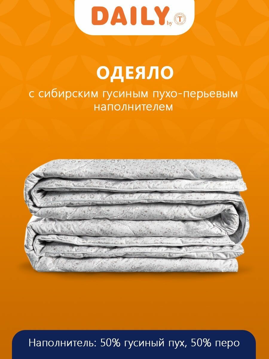 Daily by T Одеяло "Пух-перо в тике" всесезонное, хлопок с наполнителем Гусиный пух, 175х200, 1-пр. информация: