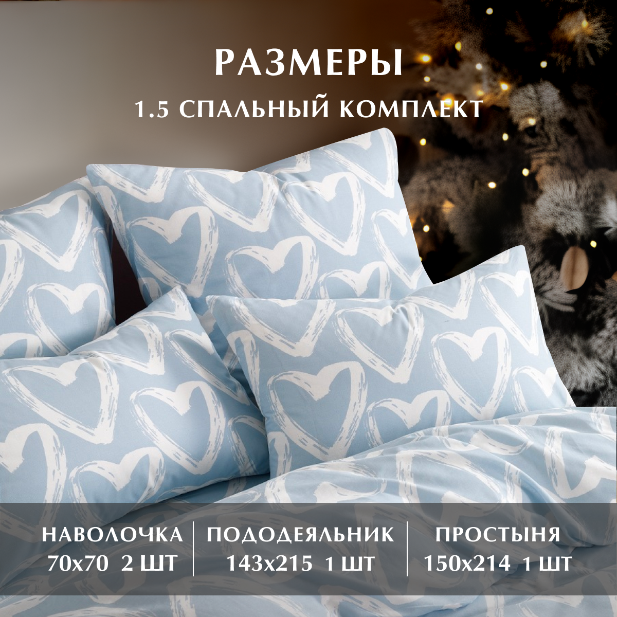 Постельное белье, Бязь, 1.5 спальное, 2 наволочки 70х70, GM, Affairs of the heart 100% хлопок на Новый год информация: