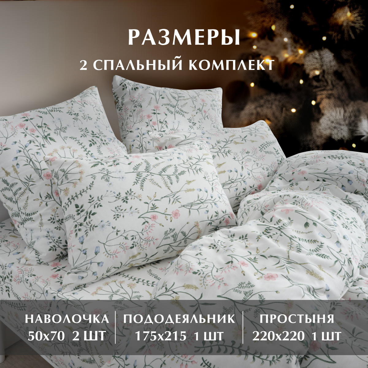 Постельное белье, Бязь, 2х спальное, 2 наволочки 50х70, GM, Gardenia 100% хлопок IKEA, на Новый год информация: