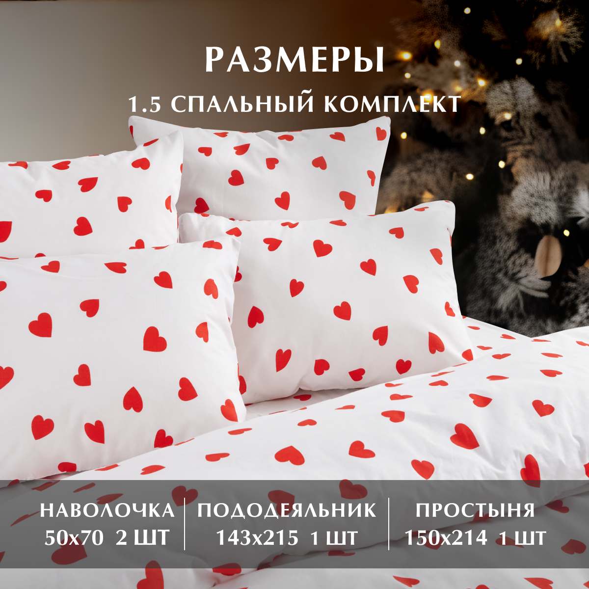 Постельное белье, Бязь, 1.5 спальное, 2 наволочки 50х70, GM, Lovely 100% хлопок IKEA, на Новый год информация: