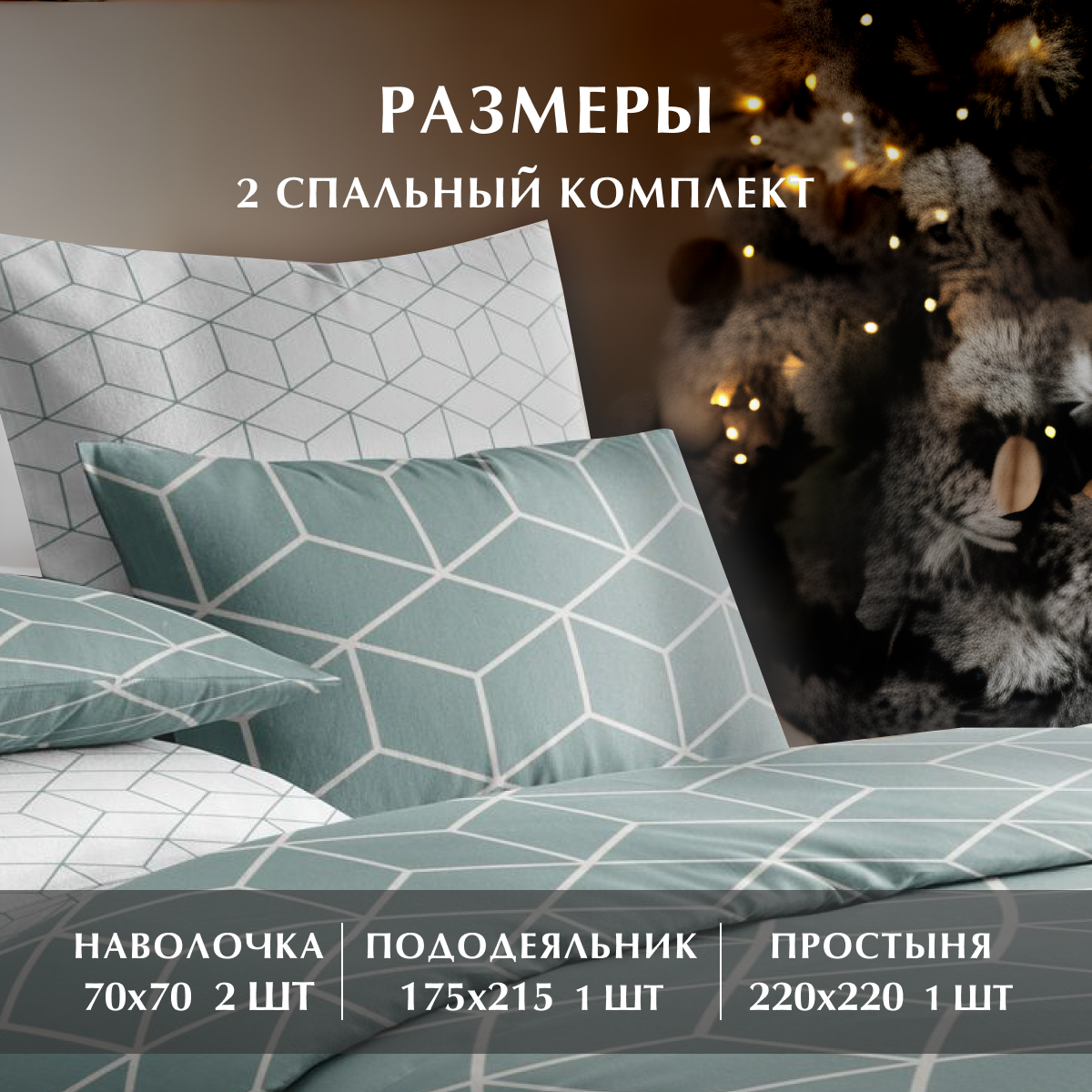Постельное белье, Бязь, 2х спальное, 2 наволочки 70х70, GM, Lounge Green 100% хлопок на Новый год информация: