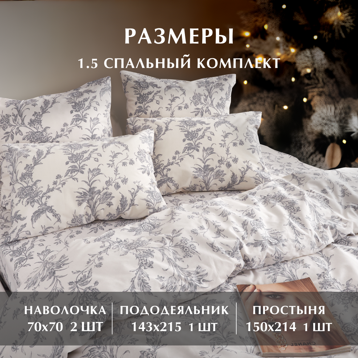 10 цен на Постельное белье, Бязь, 1.5 спальное, 2 наволочки 70х70, GM, Millennium 100% хлопок IKEA, на Новый год