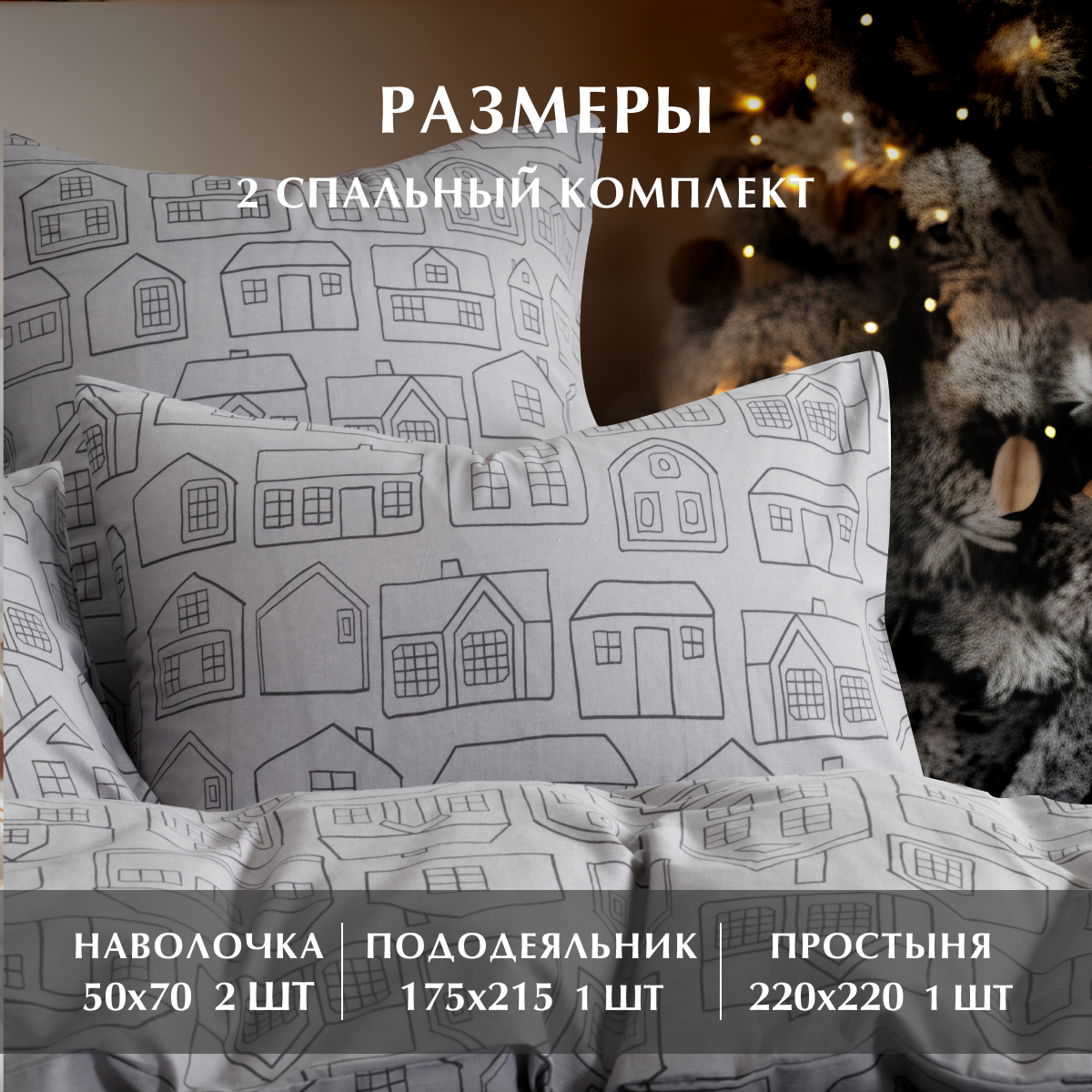 Постельное белье, Бязь, 2х спальное, 2 наволочки 50х70, GM, The commotion 100% хлопок на Новый год информация: