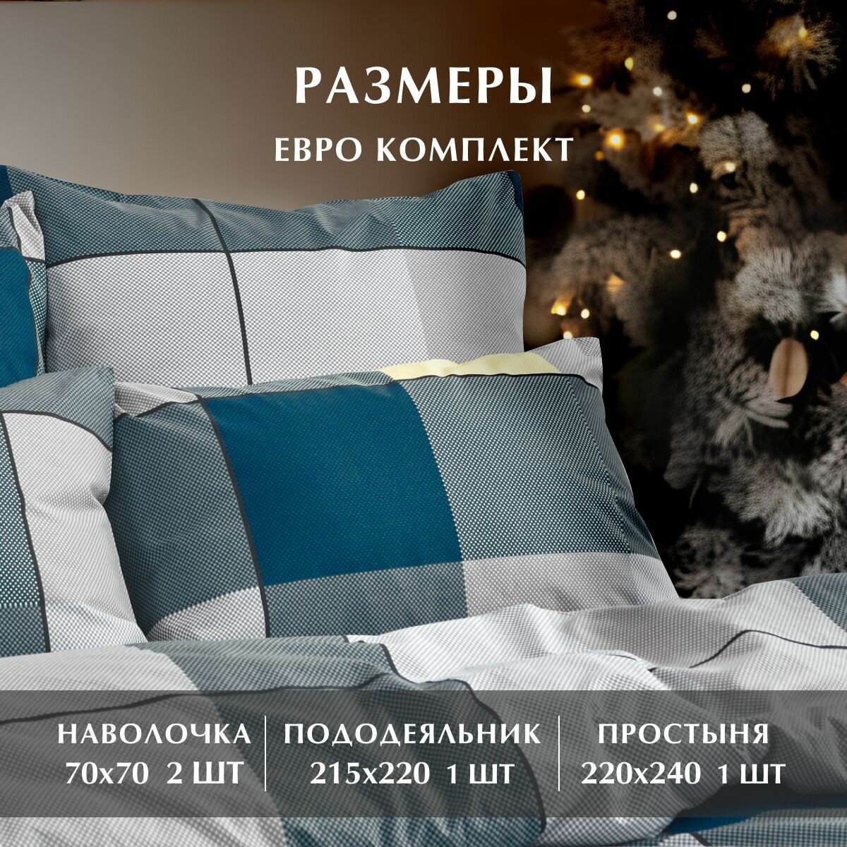 Постельное белье 2 спальный комплект с Евро простыней, Поплин, Guten Morgen, Iceberg, наволочки 70х70, 100% хлопок 2 585 ₽