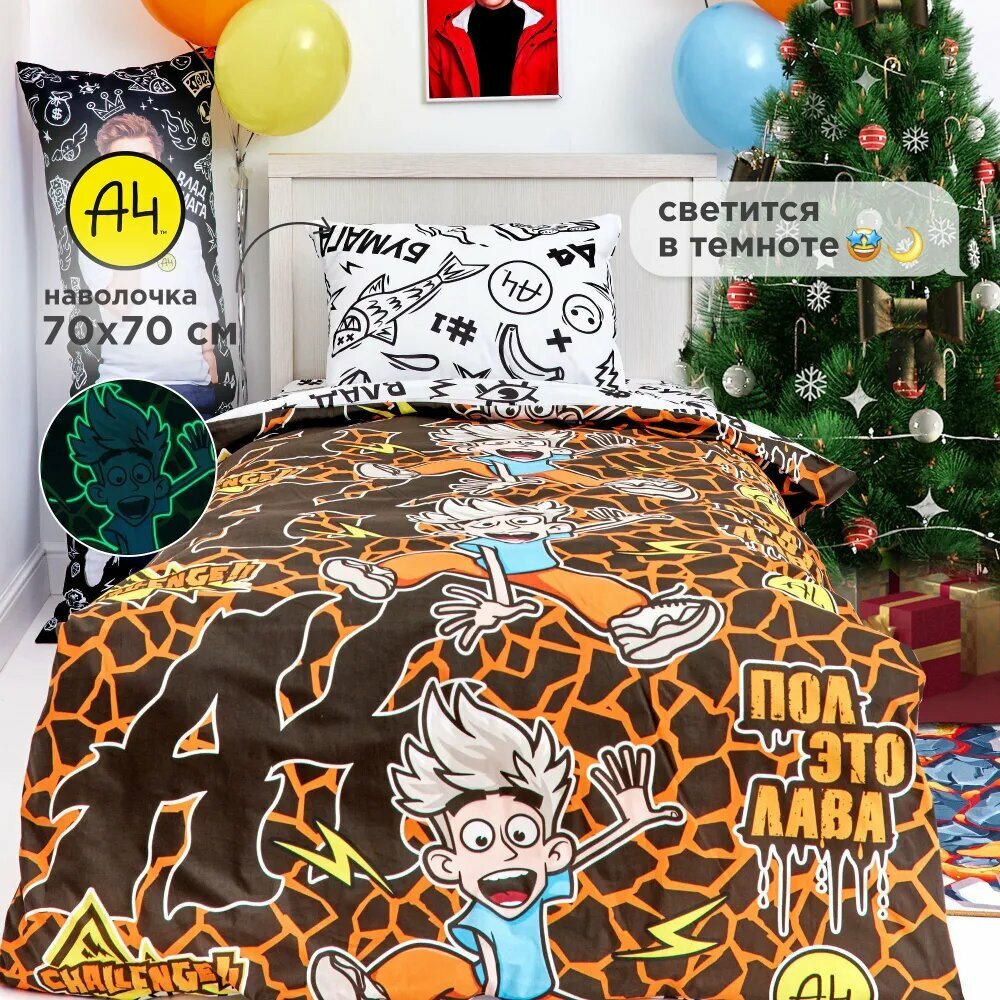Детское Постельное белье 1.5 спальное Непоседа, Поплин, нав. 50х70, Пол это лава (блонд) (Влад А4), светится в темноте 2 256 ₽