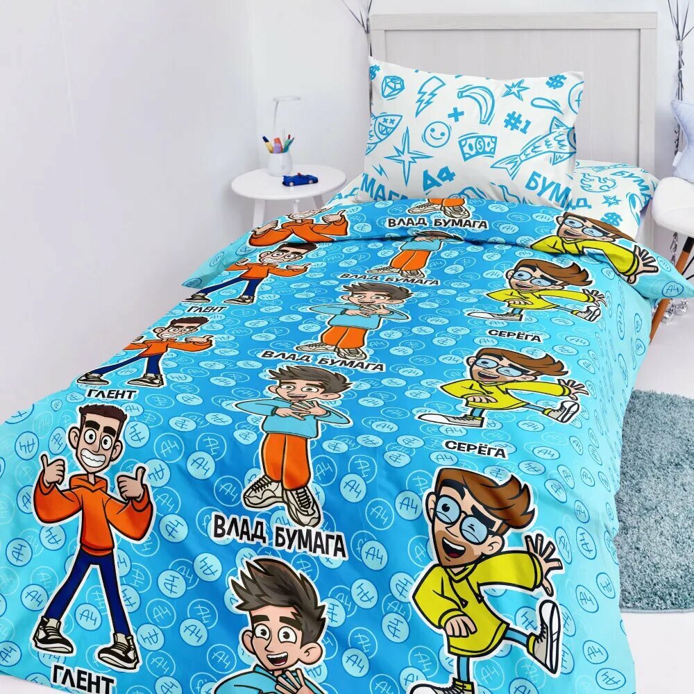 Детское Постельное белье 1.5 спальное Непоседа, Поплин, нав. 70х70, Команда А4 (Влад А4 бумага блогер) информация:
