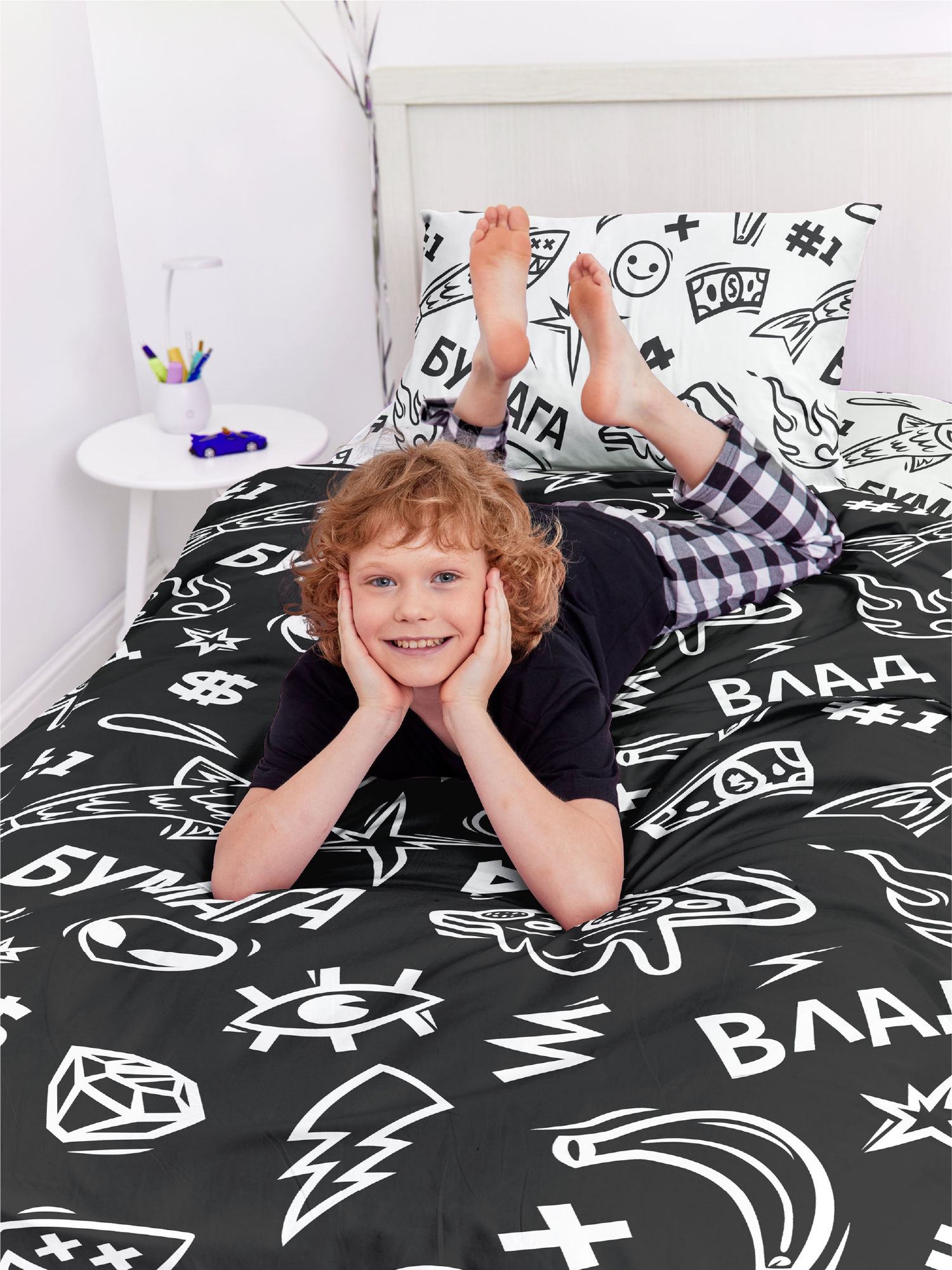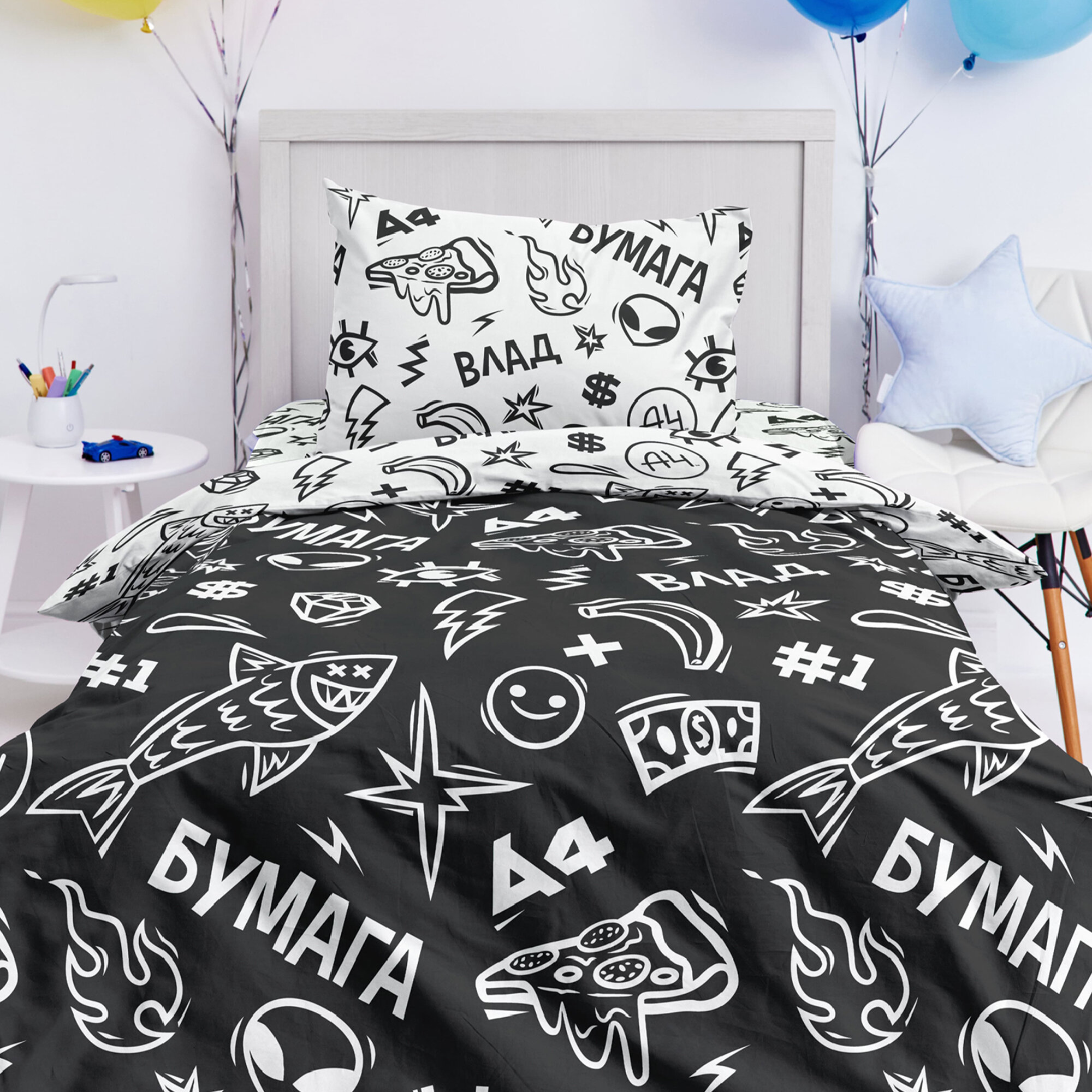 Детское Постельное белье 1.5 спальное Непоседа, Поплин, нав. 70х70, Влад Бумага (Влад А4 блогер) 2 335 ₽