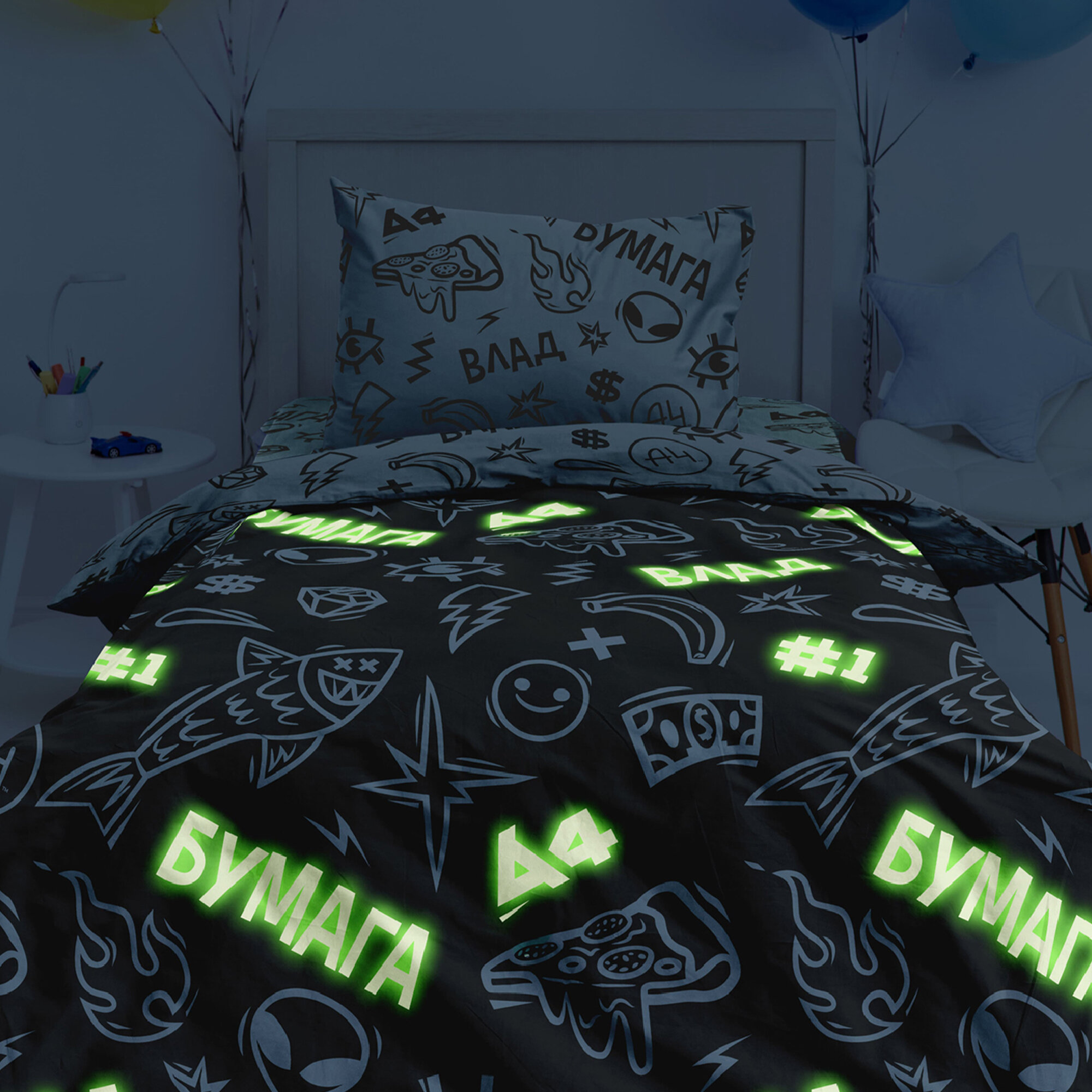 Детское Постельное белье 1.5 спальное Непоседа, Поплин, нав. 50х70, Пол это лава (блонд) (Влад А4), светится в темноте 2 256 ₽