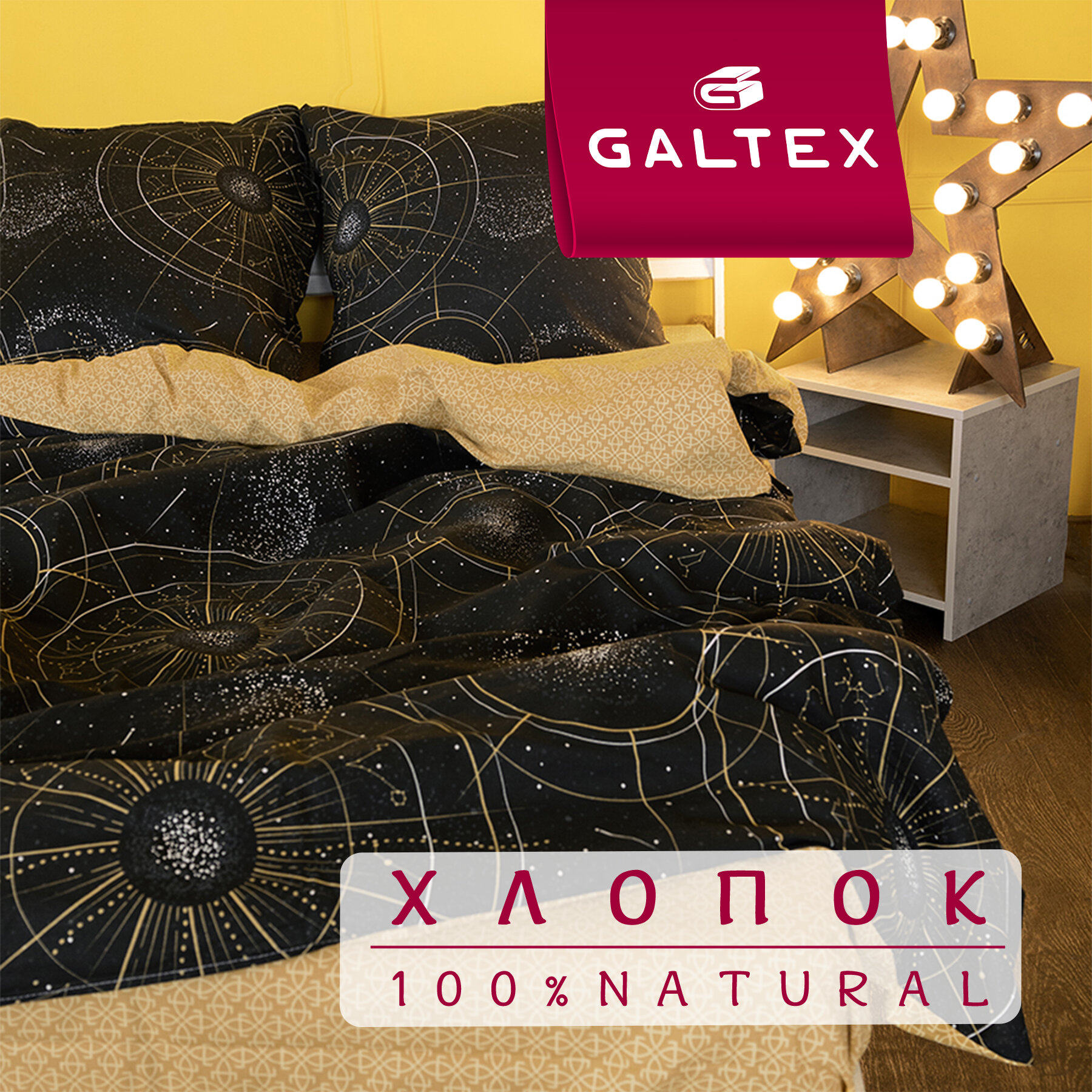Постельное белье евро / Комплект постельного белья Евро Galtex Комфорт компаньон: Созвездие черный / Тотем желтый 2 547 ₽