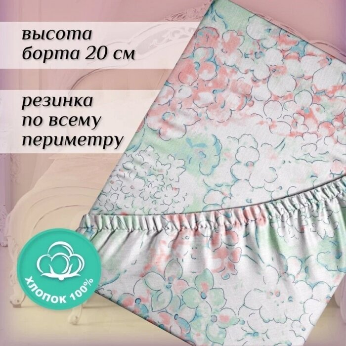 Отзывы на Простыня на резинке Поплин 200х200х20 Ночь Нежна "Эрли (мята) 70074-2"