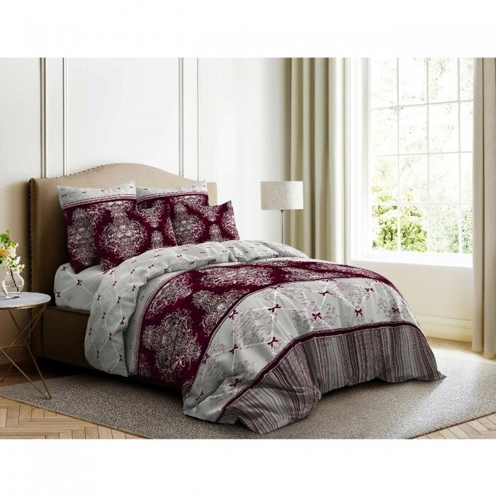 10 цен на Простыня на резинке Поплин 120х200х20 Ночь Нежна "Десанж (бордо) 7371-3"