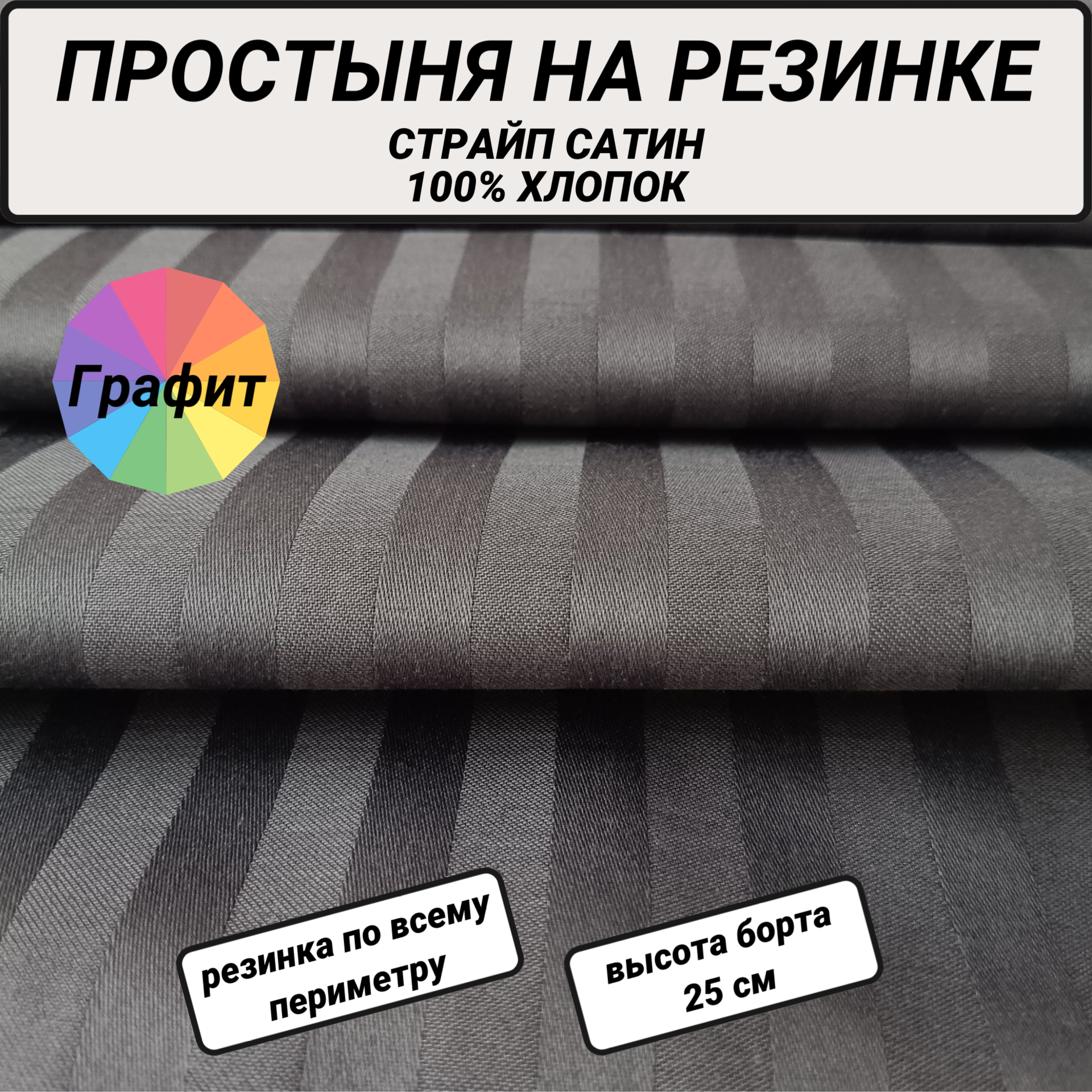 Простыня на резинке 180х200х20 страйп сатин темно-серый СПАЛЕНКА78 хлопок 100% 2 195 ₽
