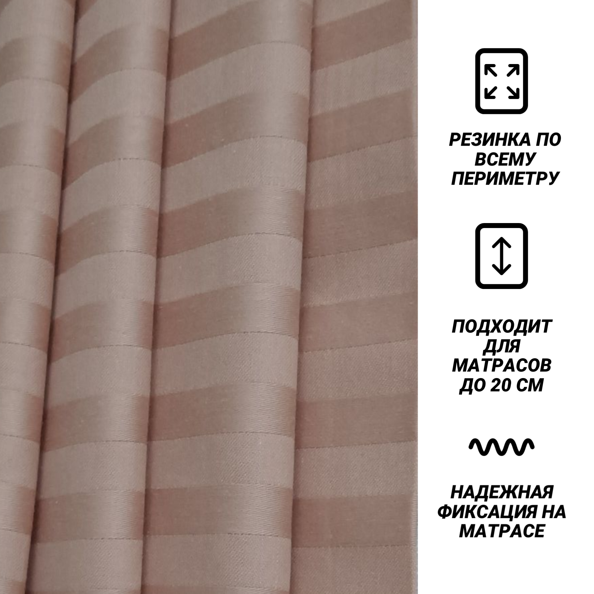 Простыня на резинке 180х200х20 страйп сатин бежевый СПАЛЕНКА78 хлопок 100%
