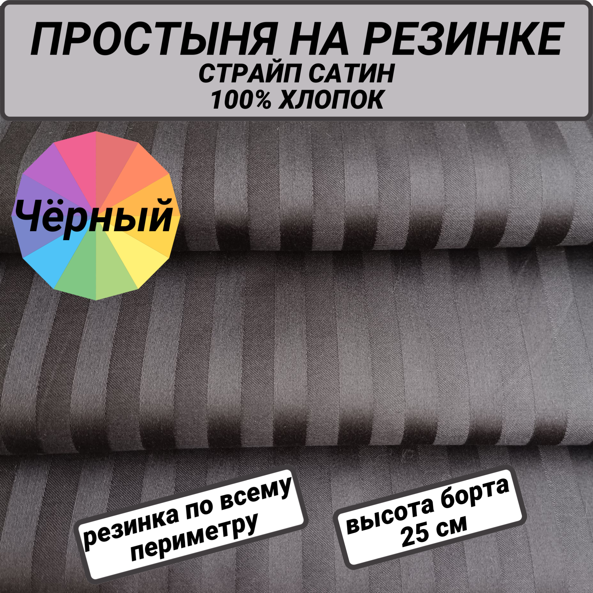 Отзывы на Простыня на резинке 180х200х20 страйп сатин черный, СПАЛЕНКА78, хлопок 100%, полоса 1х1.