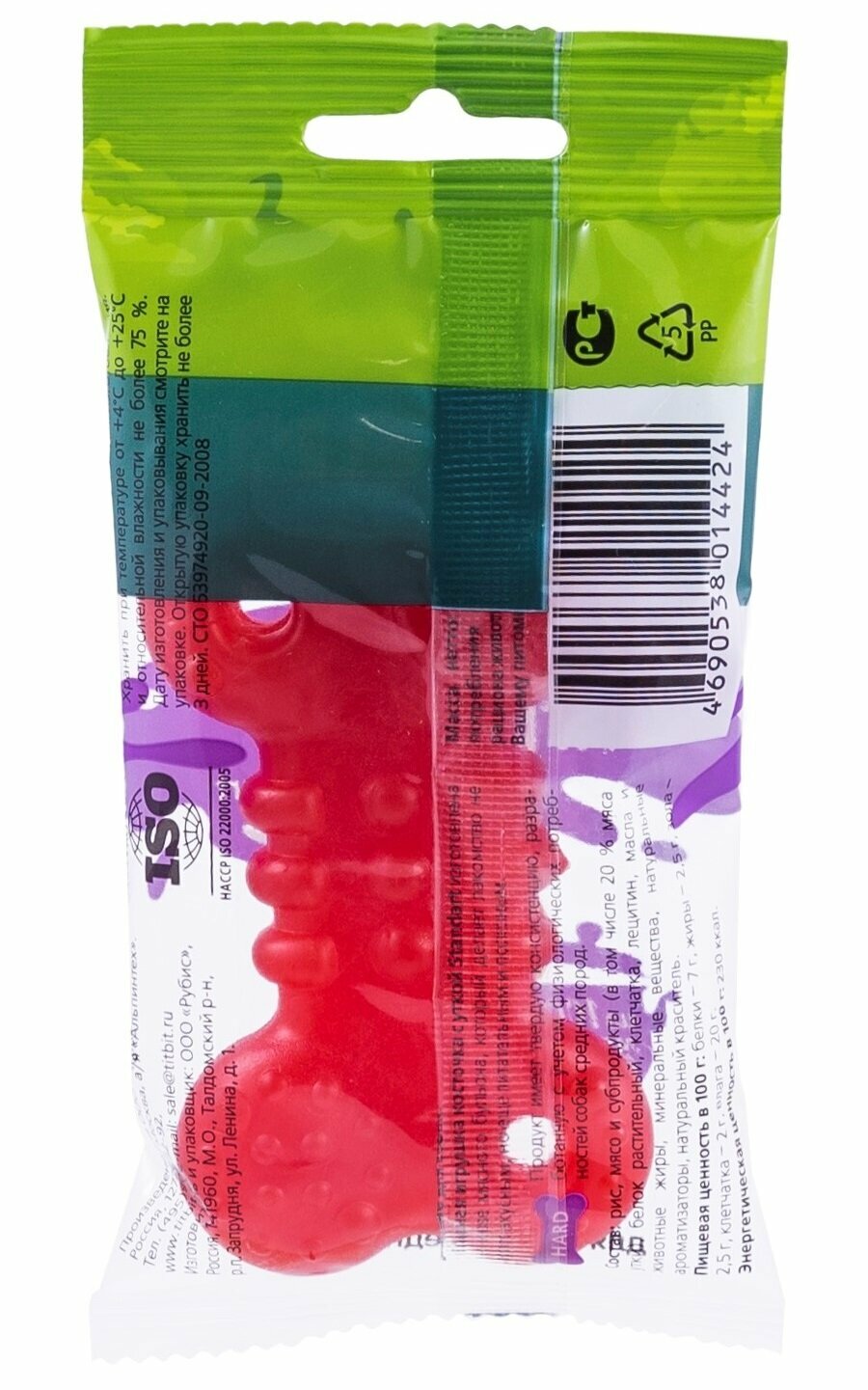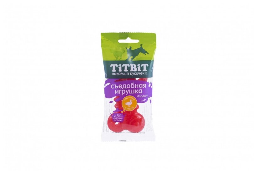 Лакомство TiTBiT Съедобная игрушка косточка standart с уткой для собак (50 г) информация:
