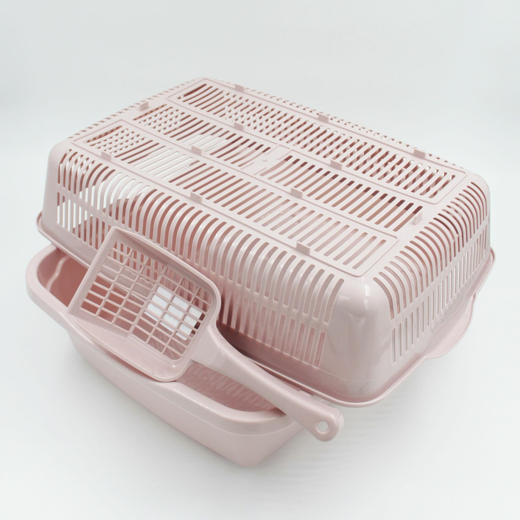 Кошачий туалет для кота с совком и сеткой, большой, пепельно-розовый информация: