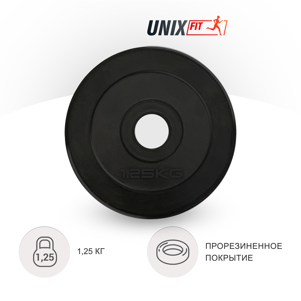 Диск для штанги/гантели UNIXFIT обрезиненный UNIX Fit 1.25 кг х 25 мм, черный