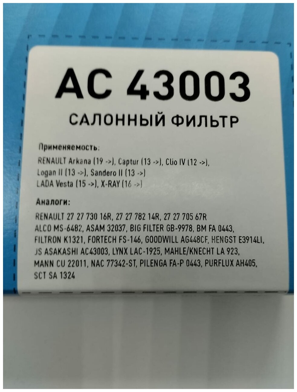 | Код производителя | AC43003 |