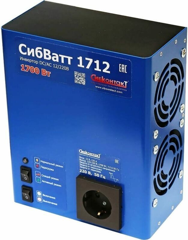 Инвертор СибВатт 1712 DC/AC, 12В/220В, 1700Вт информация: