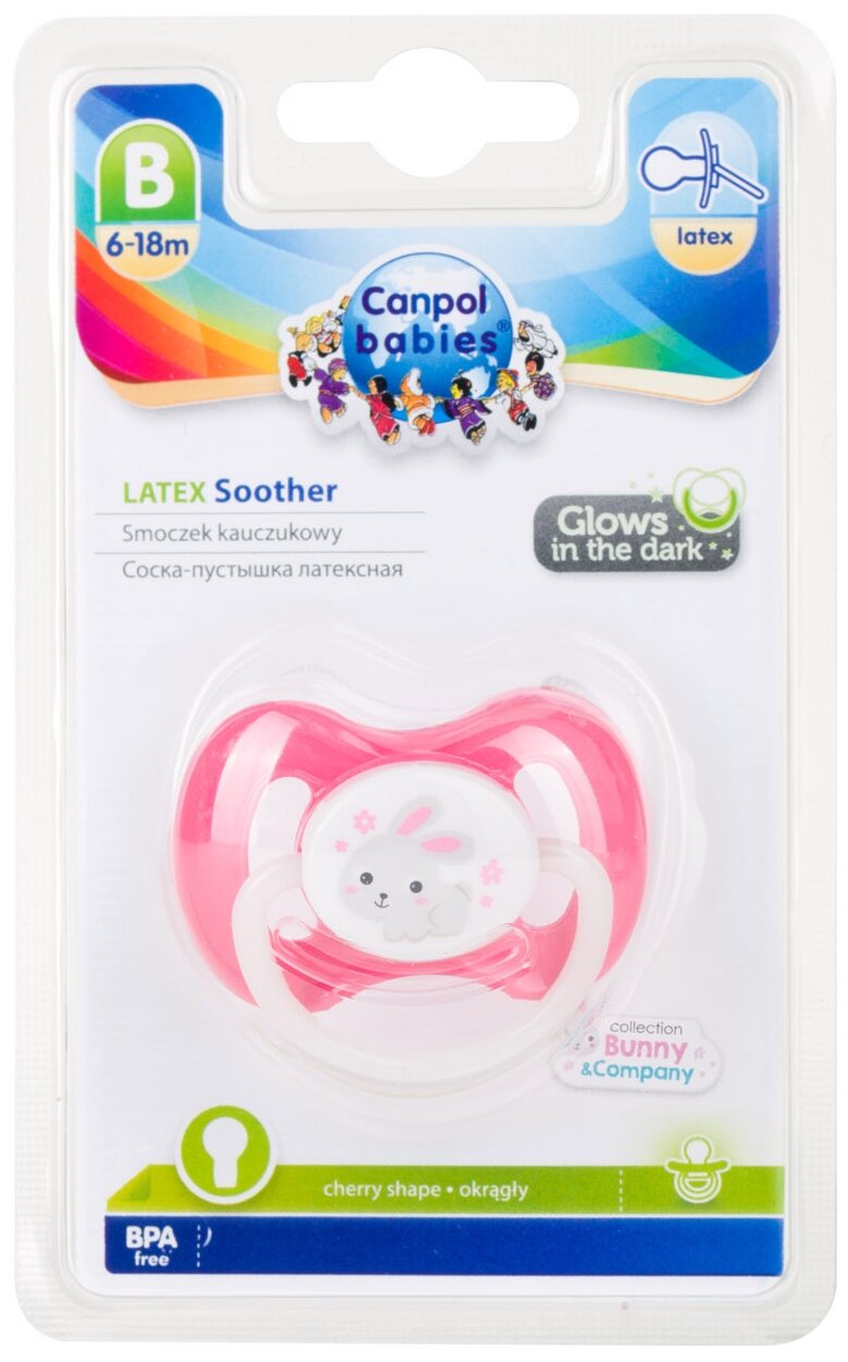 Пустышка латексная Canpol babies Bunny&Company круглая, 6-18 мес, розовая