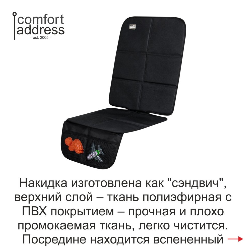 Подложка под детское автокресло Comfort Address POD-058, с высокой спинкой, черный информация: