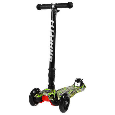 Детский 3-х колесный самокат Graffiti Snappy, черный/зеленый