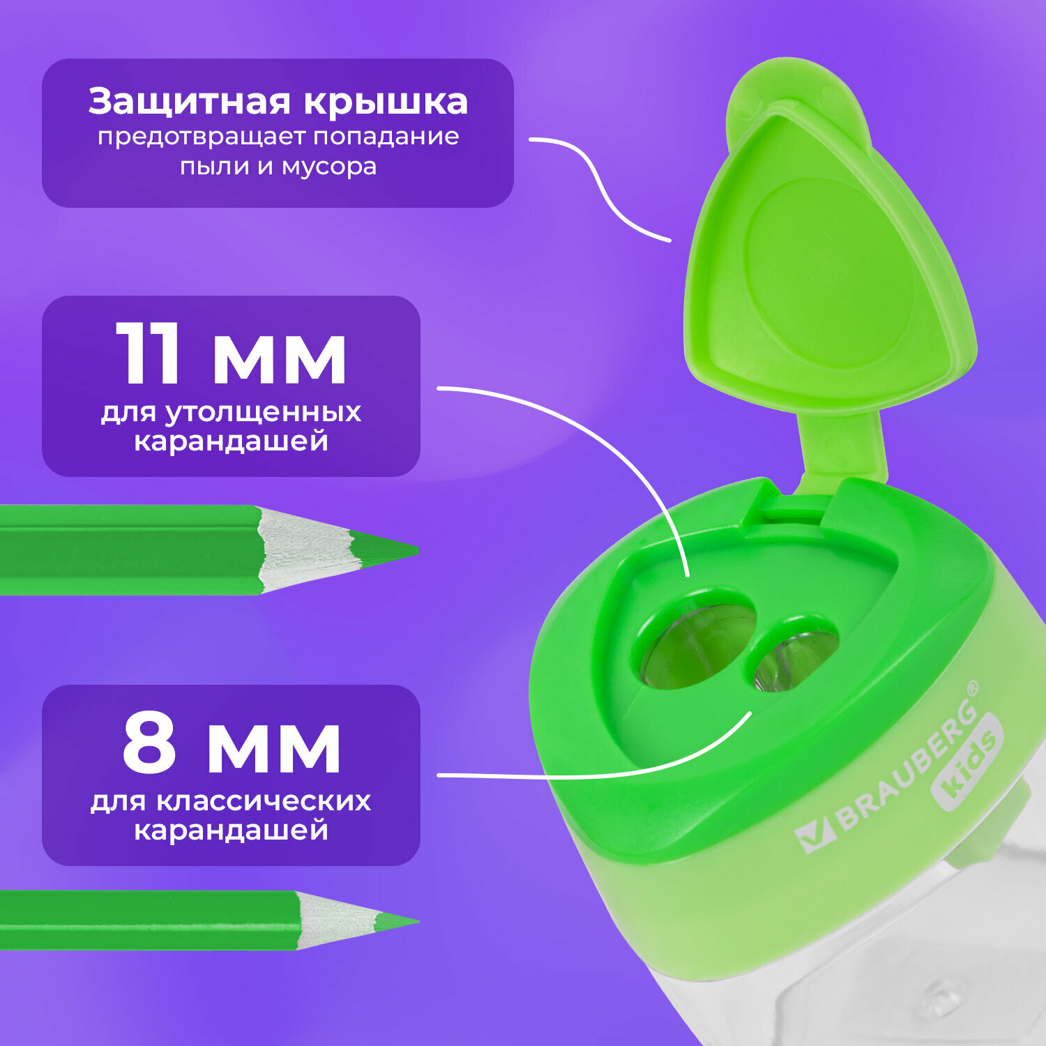 Точилка для простых и цветных карандашей, набор 2 штуки в школу, 2 отверстия, с большим контейнером, трехгранный корпус, Brauberg Kids Maxi, 271947 информация: