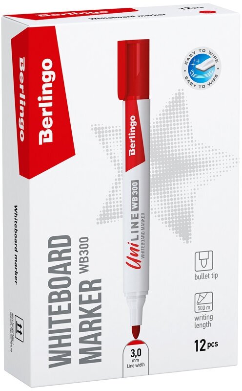 Маркер для досок Berlingo Uniline WB300 (круглый наконечник, 3мм, красный) 12шт. (PM6412) информация:
