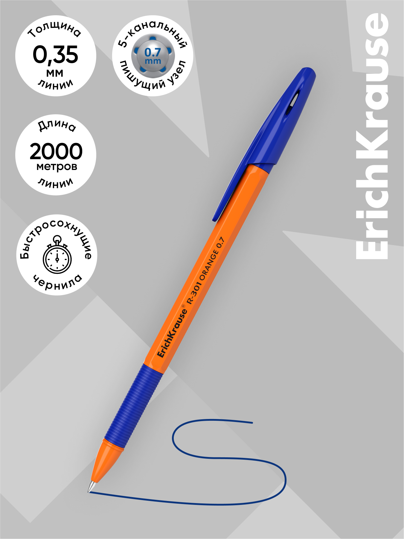 Отзывы на Набор из 8 ручек шариковых ErichKrause R-301 Stick&Grip Orange 0.7, цвет чернил синий (в пакете)