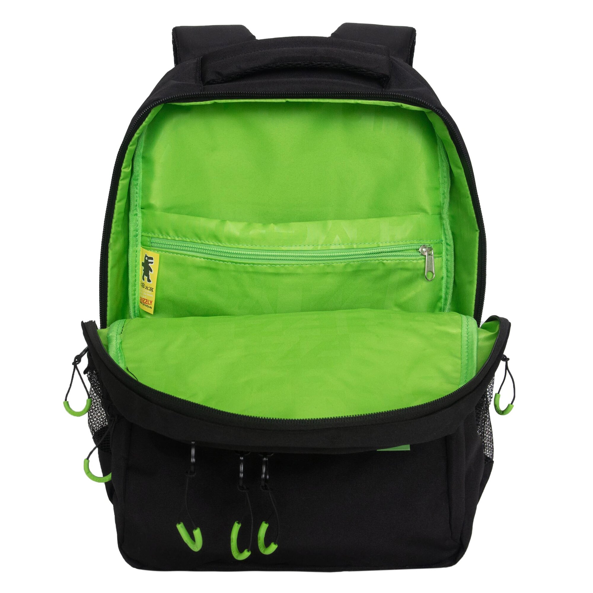 Рюкзак для мальчиков (GRIZZLY) арт RU-430-10/3 черный-салатовый 32х45х23 см информация: