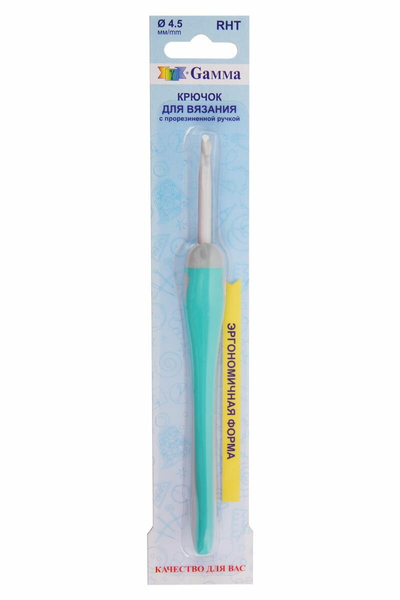 Крючки для вязания "Gamma" RHT крючок с прорезин. ручкой алюминий d 4.5 мм 14.5 см в блистере c покрытием информация:
