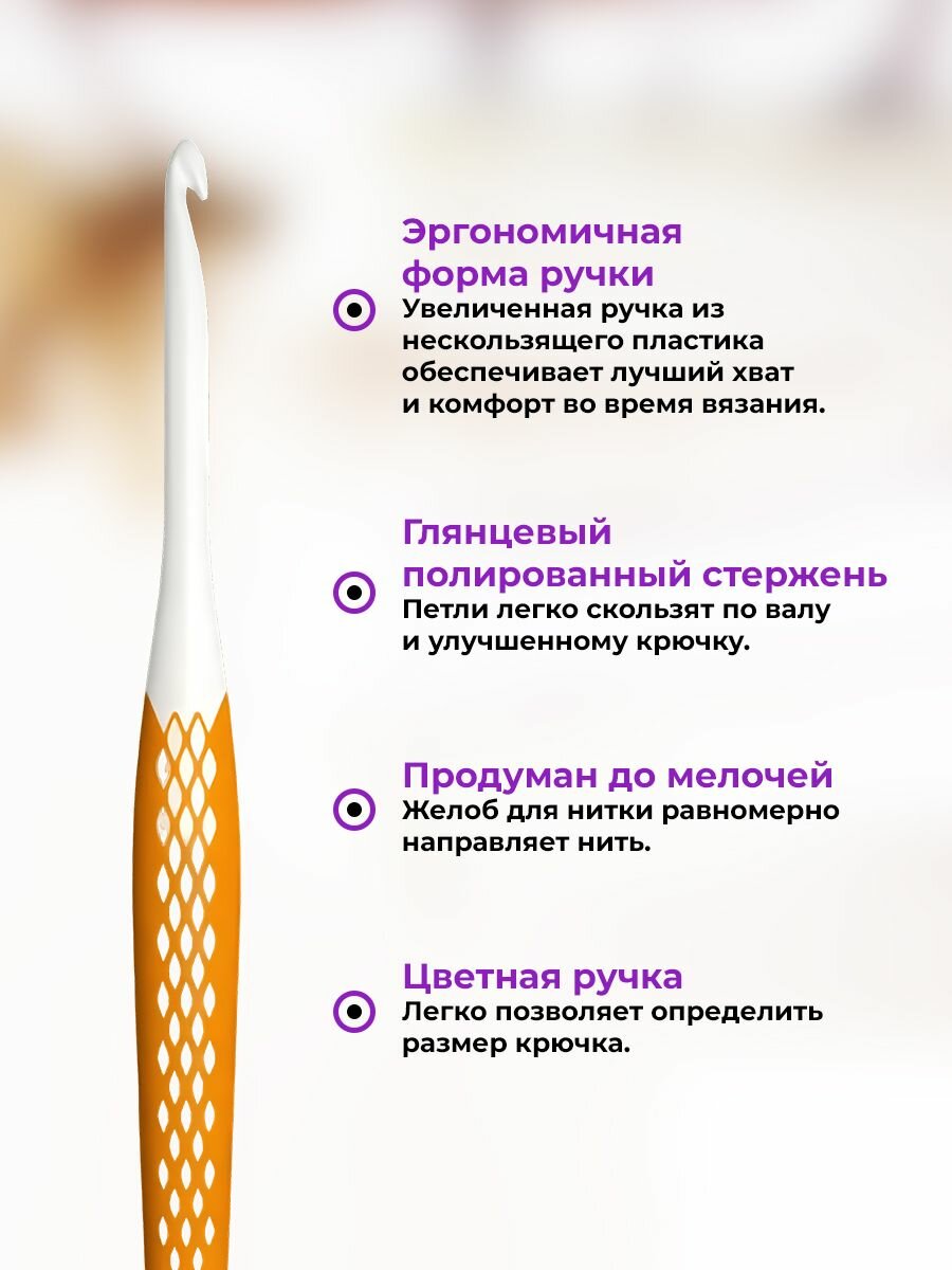 Крючки вязальные с силиконовой ручкой/ Набор крючков для вязания, 9 шт, диаметр 2; 2,5; 3; 3,5; 4; 4,5; 5; 5,5; 6 мм