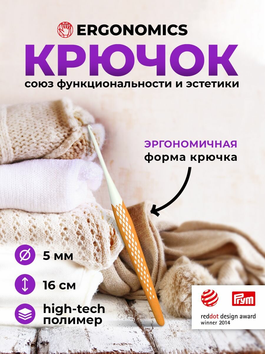 Крючок для вязания 5 мм/16см, Ergonomics Prym, 218487 информация: