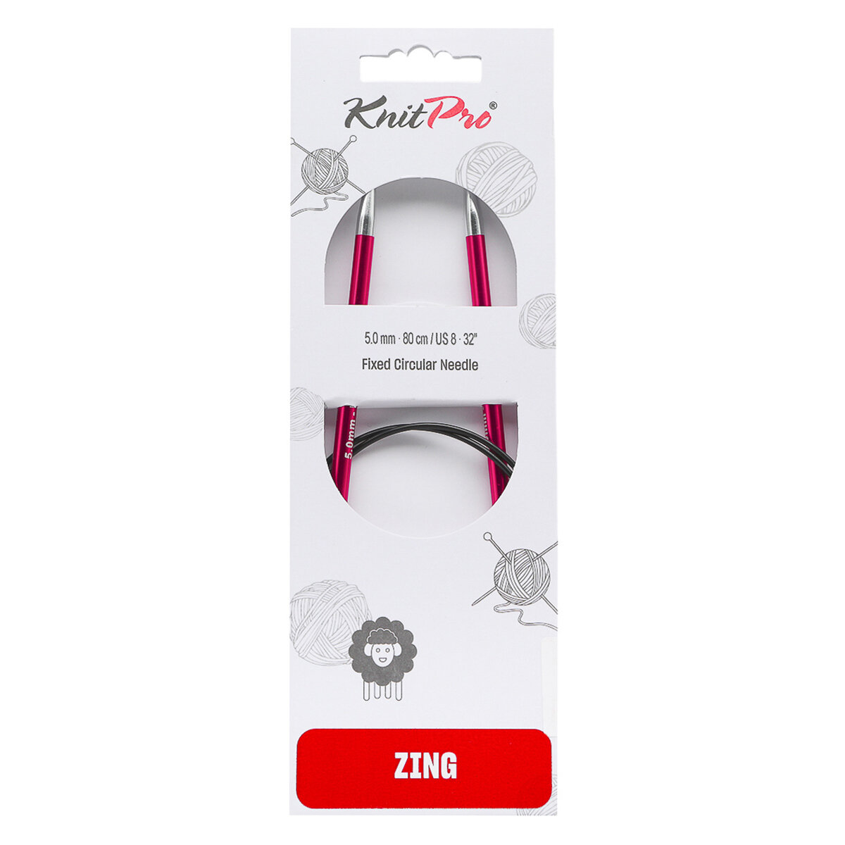 Спицы круговые Zing 5 мм/80 см, алюминий, рубиновый, KnitPro