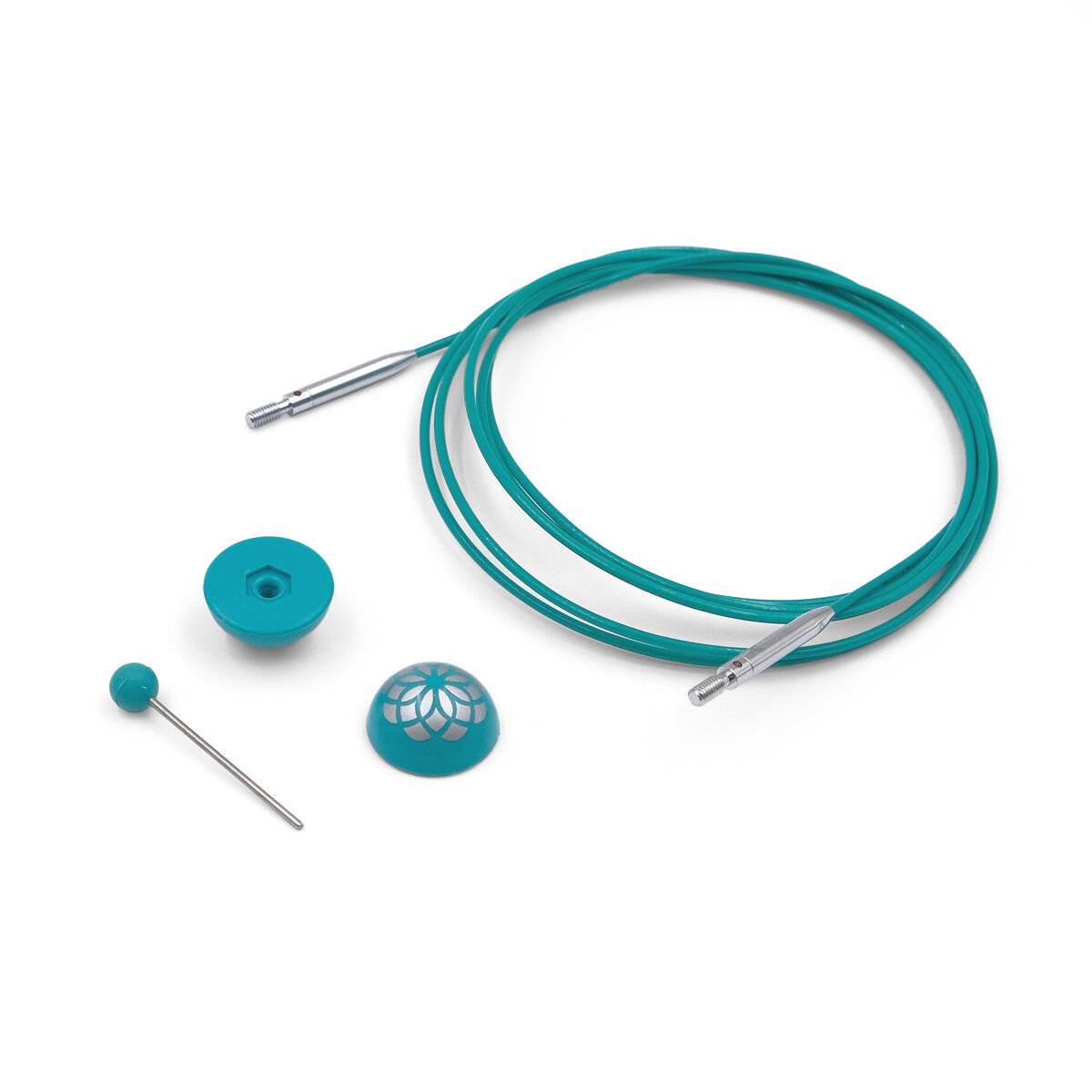 10 цен на Тросик поворотный для съемных спиц Mindful, 126 см, нержавеющая сталь с нейлоновым покрытием, бирюзовый, KnitPro